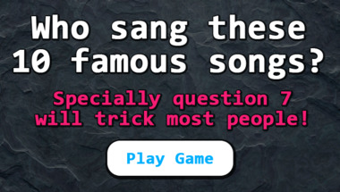 6/10 is what people on average are scoring in this Songs quiz so far. Are you ready to answer questions like "Who sang this song : "Monday, Monday" (Popular in 1967)?" and "Who sang this song : "See You Later Alligator" (Popular in 1957)?"