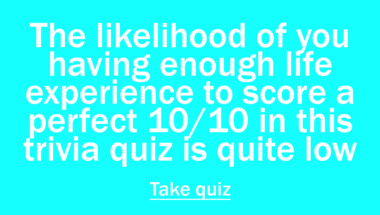 If you can answer "Which of these songs is a Beatles song?" and maybe even "Which of these songs is a Beatles song?" there is a good chance that you're going to beat the average score of 4/10 in this trivia quiz