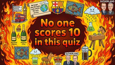 7/10 is the score to beat in this General knowledge quiz to put yourself over the average quiz taker. But you're probably going to be able to answer questions "What are actors Donald and Keifer's last name?" and "A piece of artistic gymnastic equipment used in the Olympics is name after which anim.." easy!