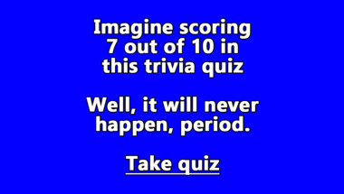 6/10 is what people on average are scoring in this trivia quiz so far. Are you ready to answer questions like "General Lee was the star of which car show?" and "Which of these words derives from the Italian word for 'ball'?"