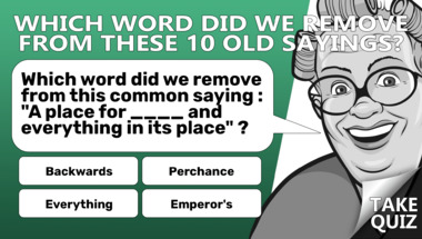 In this fun trivia quiz we're going to ask questions like "Which word did we remove from this common saying : "____ old, something new, somethin.." and "Which word did we remove from this common saying : "A place for ____ and everything i..".