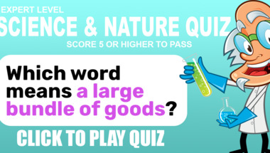 4/10 is what people on average are scoring in this Science quiz so far. Are you ready to answer questions like "Which word means "a large bundle of goods"?" and "What type of molecule is CH3OH?"