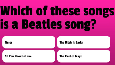 6/10 is what people on average are scoring in this trivia quiz so far. Are you ready to answer questions like "Which of these songs is a Beatles song?" and "Which of these songs is a Beatles song?"