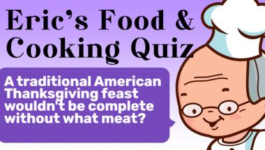Look forward to questions like "A traditional American Thanksgiving feast wouldn't be complete without what meat?" and "Strudel is an European Jewish dessert of fruit encased in what?"