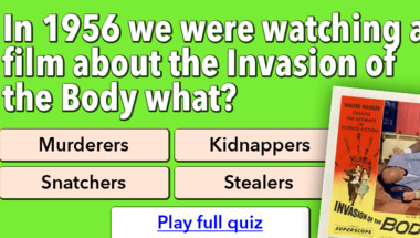 Look forward to questions like "In 1956 we were watching a film about the Invasion of the Body what?" and "What was Annie's surname in Annie Get Your Gun?"